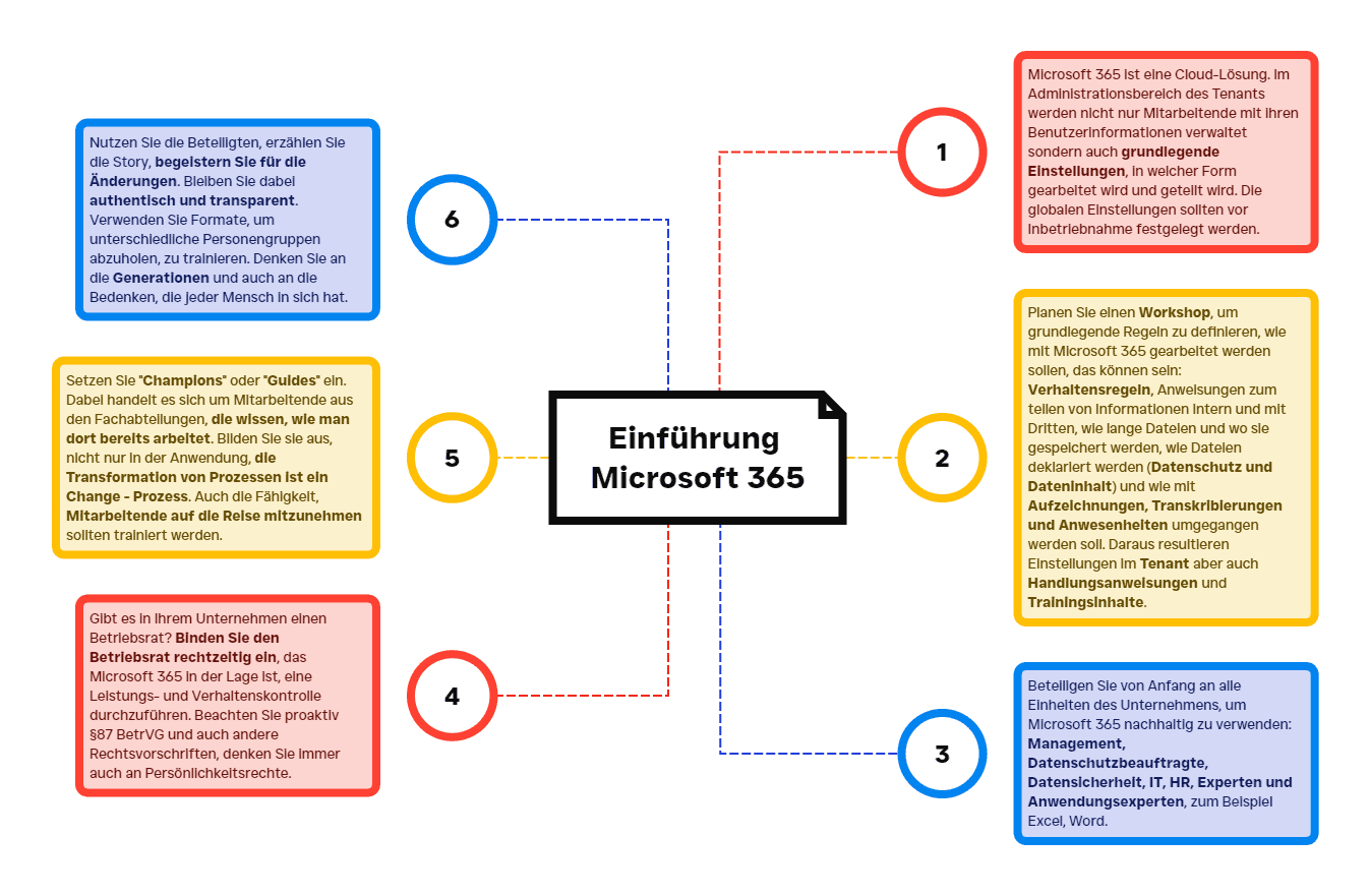 Es ist bei der Einführung von Microsoft 365 nicht einfach damit getan Lizenzen einzukaufen und los geht es. Da in der Microsoft 365 viele Themen abgehandelt werden, ist es notwendig, die Einführung genau zu planen und die richtigen Menschen an Bord zu holen.